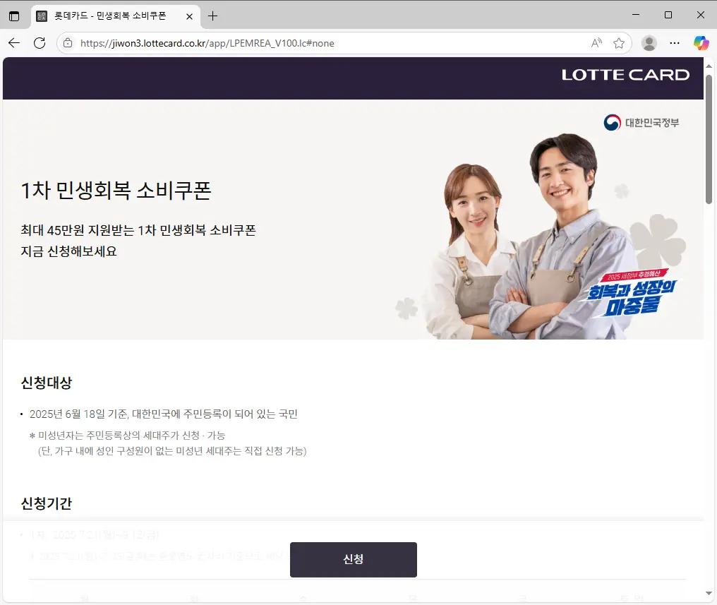 롯데카드 민생회복지원금 신청 (jiwon3.lottecard.co.kr)
