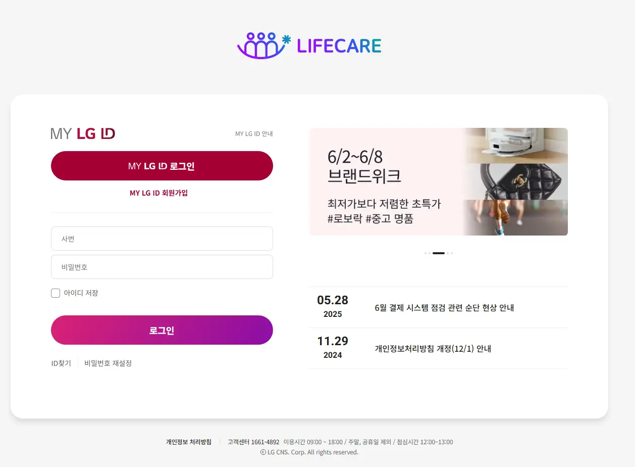 LG디스플레이 라이프케어 임직원몰 (https://lgd.lglifecare.com)