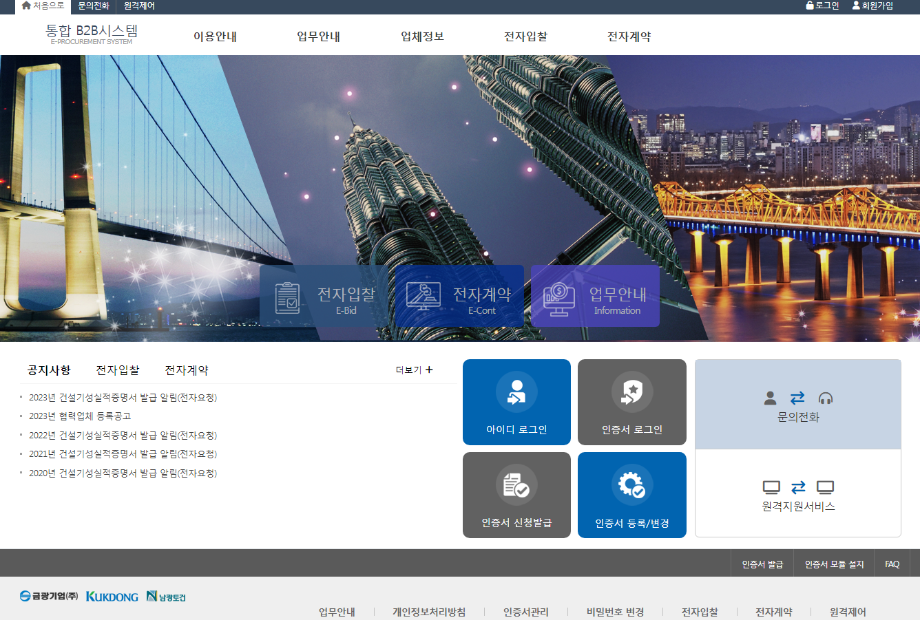 물류와 공급망 관리를 효율적으로 하는 시스템으로써 통합 B2B시스템이 운영됩니다. 해당 시스템을 통하여 전자입찰, 전자계약에 대한 서비스를 진행해보시기 바랍니다.