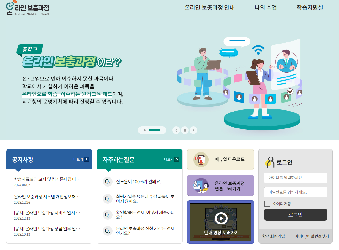 온라인보충과정(중학교) (https://ms.onlineschool.or.kr/)